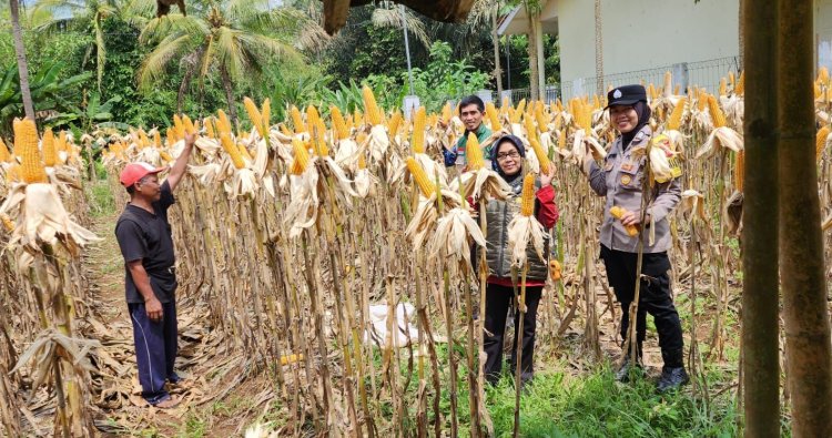 Ketahanan Pangan, Polsek Ciamis Ikut Bersama Poktan Jadimulya Panen Raya Jagung