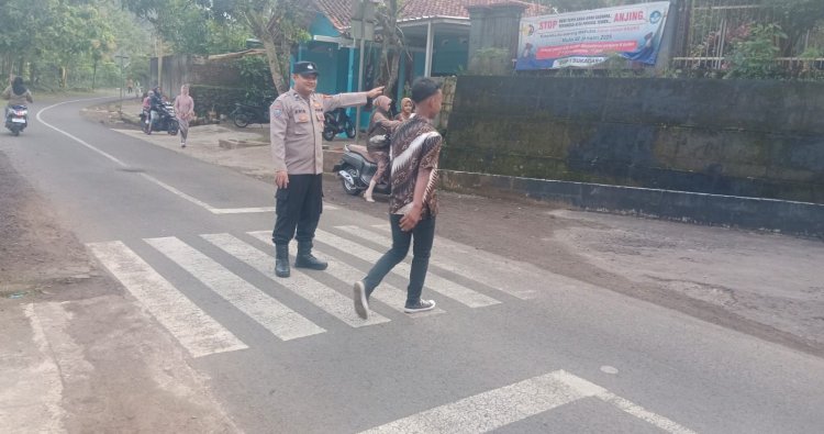 Peran Kepolisian dalam Pelayanan Pagi Hari, Polsek Sukadana Laksanakan Strong Point di Depan SMPN 1 Sukadana